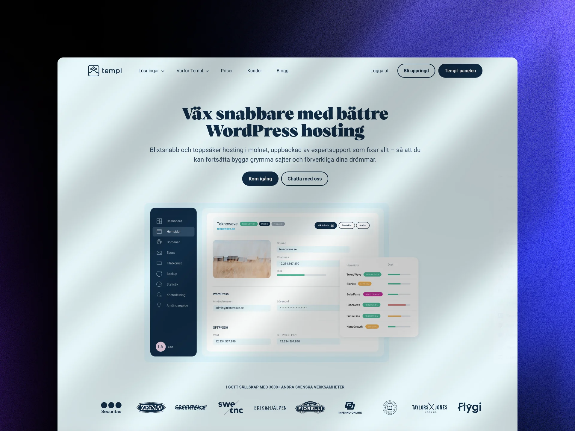 Templs team är experter på WordPress. De löser tekniska problem på servernivå så att jag kan fokusera på affärsutveckling.